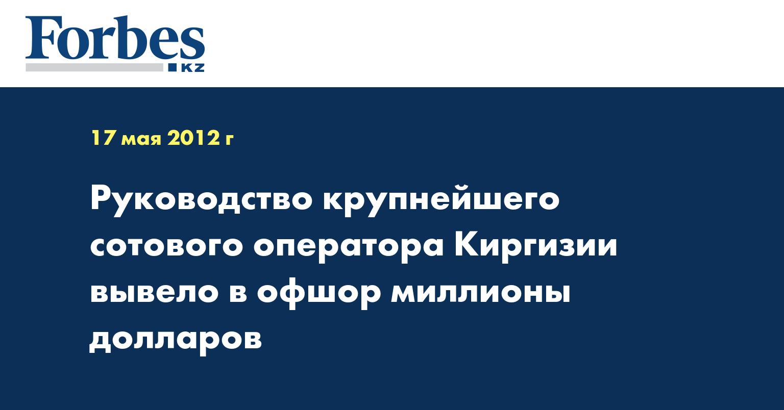 Временное руководство крупнейшего сотового оператора Киргизии ЗАО «Альфа Телеком» (торговый бренд MegaCom) вывело в офшорные зоны миллионы долларов с помощью китайской компании. Об этом заявил в среду во время заседания парламента республики председатель антикоррупционной службы госкомитета нацбезопасности (АКС ГКНБ) Киргизии Бектен Сыдыгалиев, прередает ИА Новости-Казахстан.