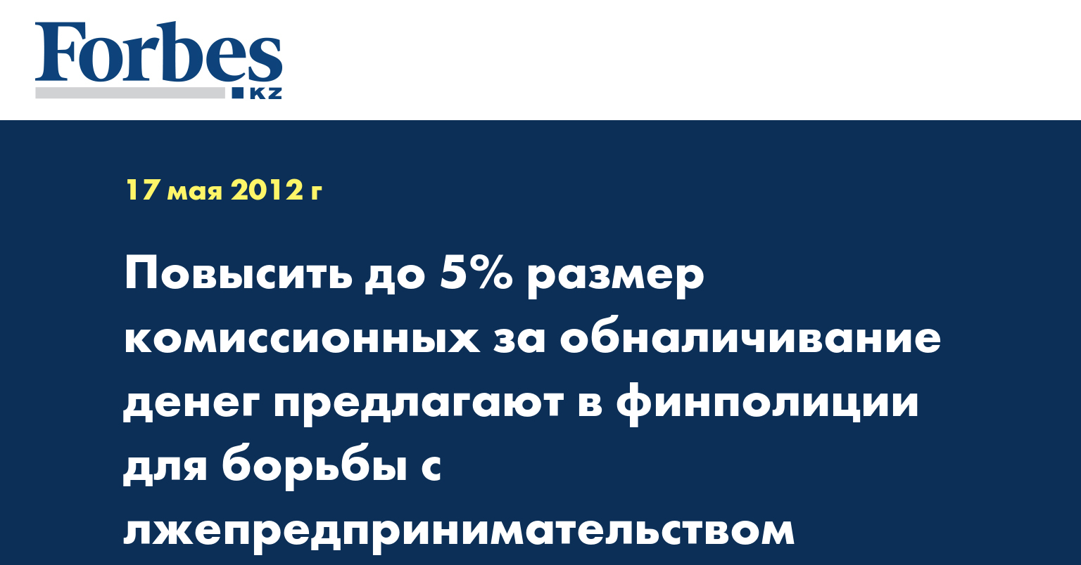 Комиссионные за обналичивание денег для борьбы с лжепредпринимательством следует поднять до 5% от переводимой суммы, заявил заместитель председателя агентства РК по борьбе с экономической и коррупционной преступностью (финполиция) Айвар Боданов, как передает КазТАГ.