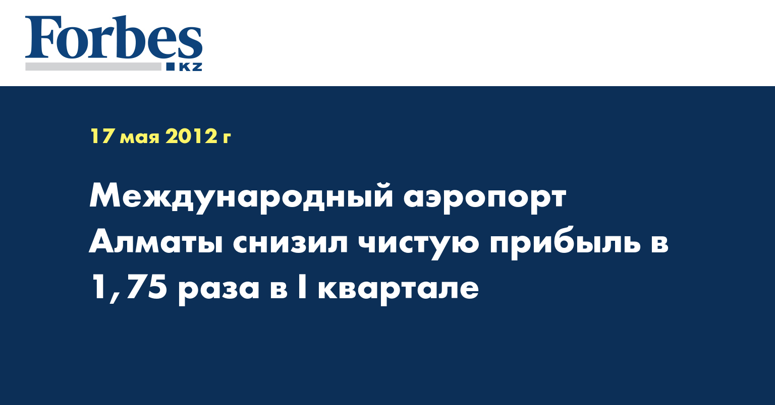 Чистая прибыль АО «Международный аэропорт Алматы» в I квартале составила Т1,081 млрд, что в 1,75 раза меньше, чем в соответствующем периоде 2011 года, указывается в консолидированной финансовой отчетности компании, передает КазТАГ.