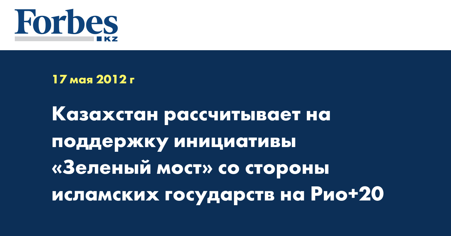 «Мы надеемся, что эта инициатива («Зеленый мост» – КазТАГ) будет рассмотрена в формате Рио+20 в июне этого года в Бразилии, а также рассчитываем на поддержку со стороны исламских государств», - сказал С. Ахметов на заседании пятой исламской конференции министров охраны окружающей среды в четверг.