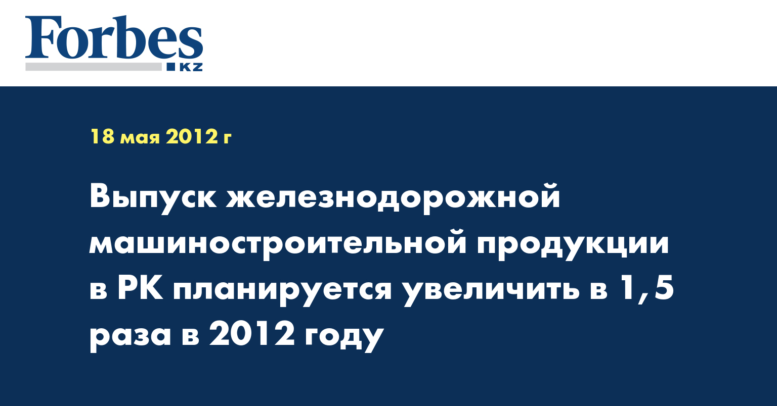 Производство железнодорожной машиностроительной продукции в Казахстане планируется увеличить в 1,55 раза до Т155 млрд в 2012 году, указывается в публикации в официальном аккаунте фонда национального благосостояния (ФНБ) «Самрук-Казына» в Facebook, передает КазТАГ.
