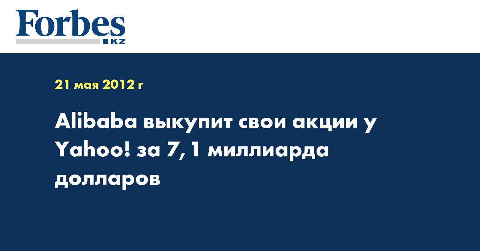 В феврале 2012 года стало известно, что переговоры Alibaba об обратном выкупе своих акций у Yahoo! зашли в тупик. Тогда сообщалось, что Alibaba не устраивает цена, которую предлагает Yahoo!.