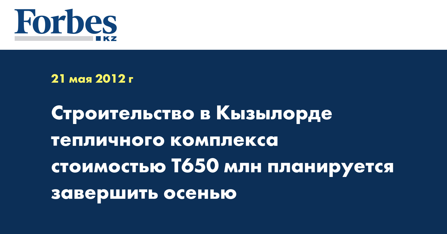 «Крупный тепличный комплекс в Кызылорде запланировано завершить осенью этого года», - сообщили в пресс-службе городского акимата в понедельник.