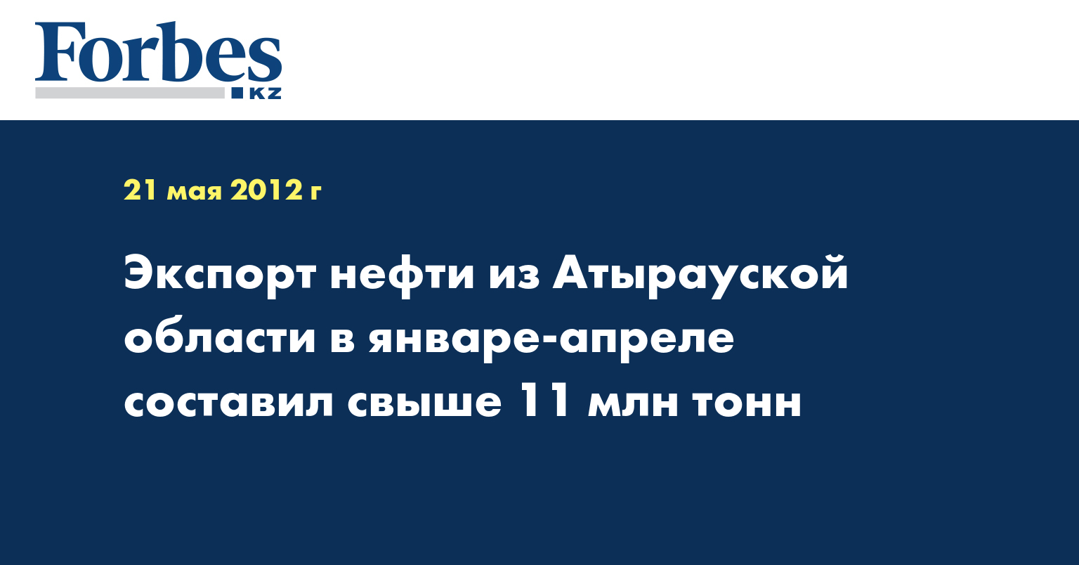 Экспорт нефти из Атырауской области в январе-апреле 2012 года составил свыше 11 млн тонн, сообщил заместитель начальника таможенного поста «Энергетический» Махфуз Балтаев.