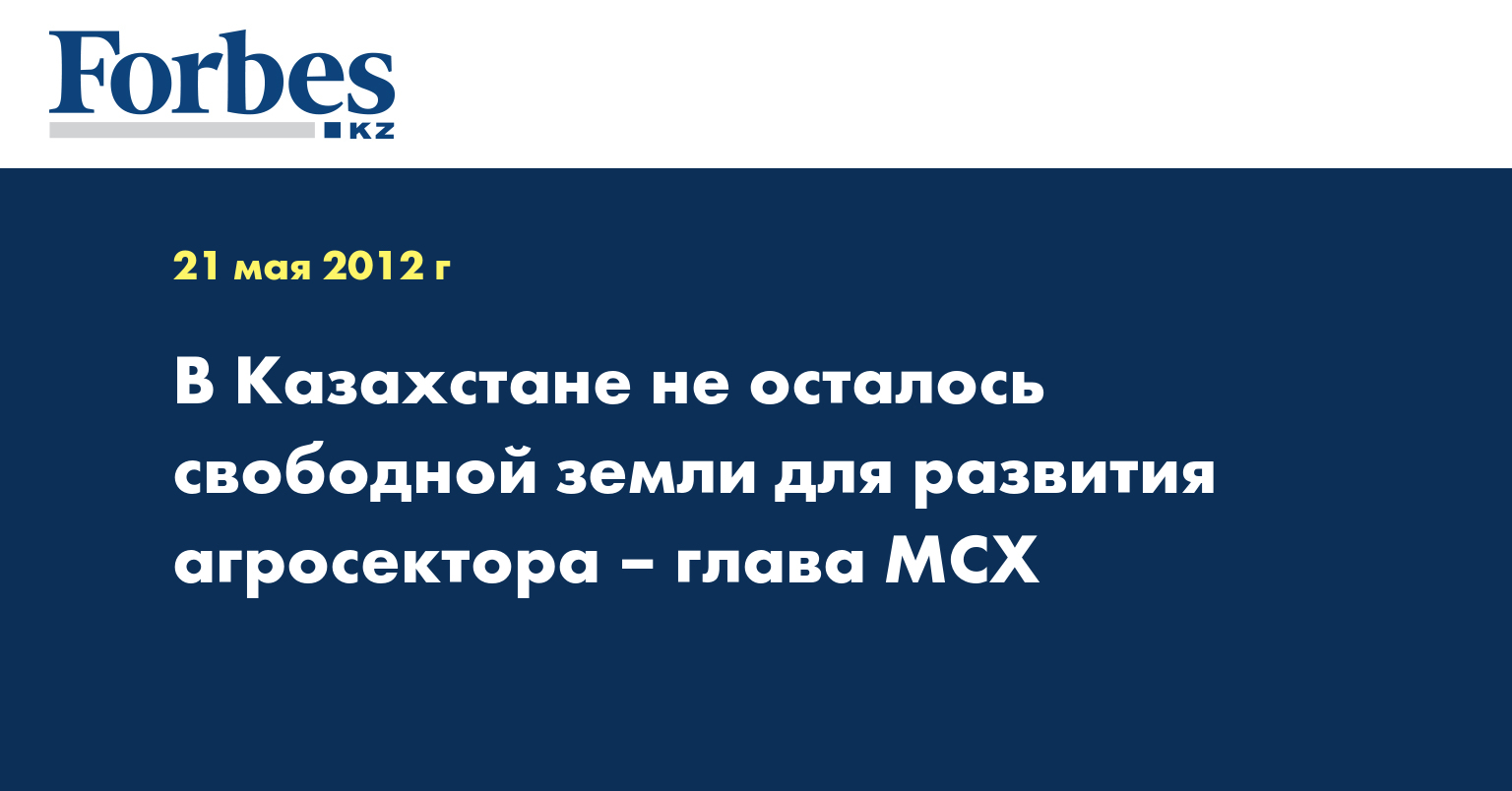 В Казахстане не осталось свободной земли для развития аграрного сектора, сообщил министр сельского хозяйства (МСХ) РК Асылжан Мамытбеков, передает КазТАГ.