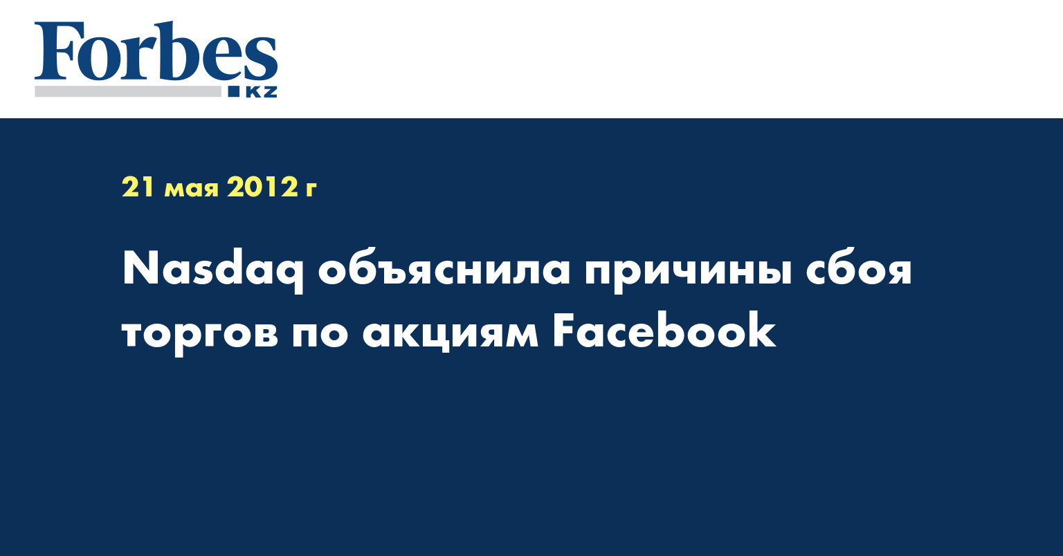 Первые торги акциями социальной сети Facebook начались с задержкой из-за программного сбоя, который произошел в результате перегрузки компьютерных систем многочисленными обновлениями и отменой заказов. Об этом, как сообщает The Wall Street Journal, заявил Роберт Грифилд (Robert Greifeld) - глава биржи Nasdaq, на которой торгуются акции крупнейшей в мире соцсети, передает Lenta.ru.