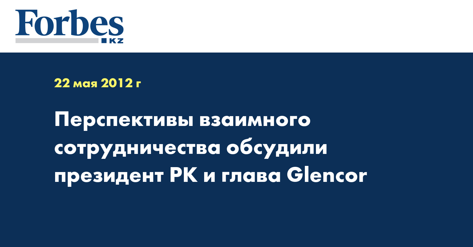 «Сегодня в рамках заседания совета иностранных инвесторов глава государства Нурсултан Назарбаев встретился с председателем правления Glencor International AG Айваном Глазенбергом. В ходе встречи президент Казахстана и глава компании обсудили перспективы развития взаимного сотрудничества», - говорится в сообщении на сайте Ак орды во вторник.