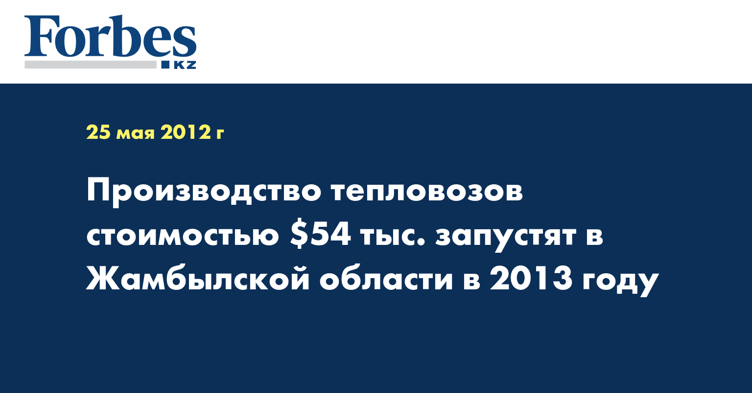 Производство стоимостью $54 тыс. планируется запустить в 2013 г. При этом в год будет выпускаться 10 маневровых тепловозов, а через 3 года производительность завода должна подняться до 50 тепловозов в год, рассказали в казахстанской компании после подписания соглашения в четверг.