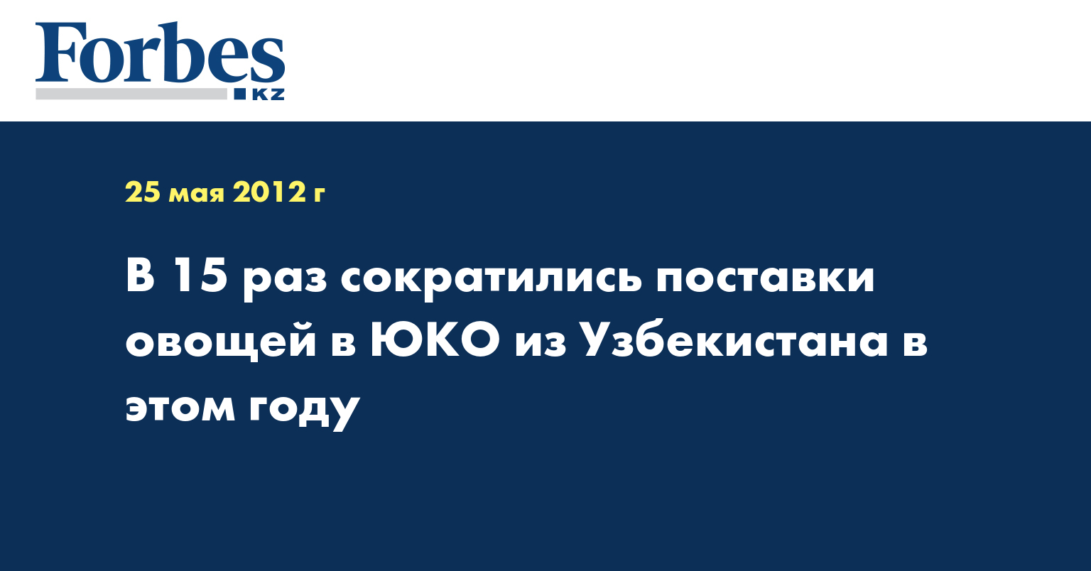 «За 4 месяца 2011 года из Узбекистана в ЮКО было ввезено почти 46 тыс. тонн свежих овощей общей стоимость около $30 млн. За такой же период текущего года из соседней страны ввезено 3439 тонн свежих овощей стоимостью около $4 млн», - привела данные пресс-секретарь областного ДТК Баян Каюпова в пятницу, передает КазТАГ.