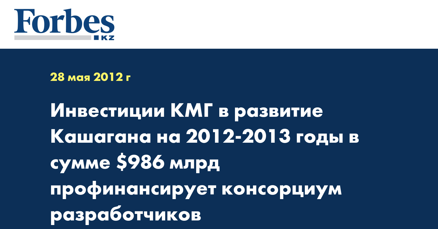 КазТАГ - Консорциум компаний-разработчиков месторождения Кашаган профинансирует инвестиции АО «Национальная компания «КазМунайГаз» (КМГ) в развитие проекта на 2012-2013 годы в сумме $986 млрд, сообщил министр нефти и газа РК Сауат Мынбаев.