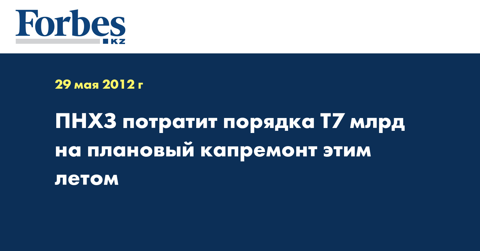 Павлодарский нефтехимический завод (ПНХЗ) потратит на плановый капитальный ремонт порядка Т7 млрд этим летом, сообщил генеральный директор АО «ПНХЗ» Шухрат Данбай.