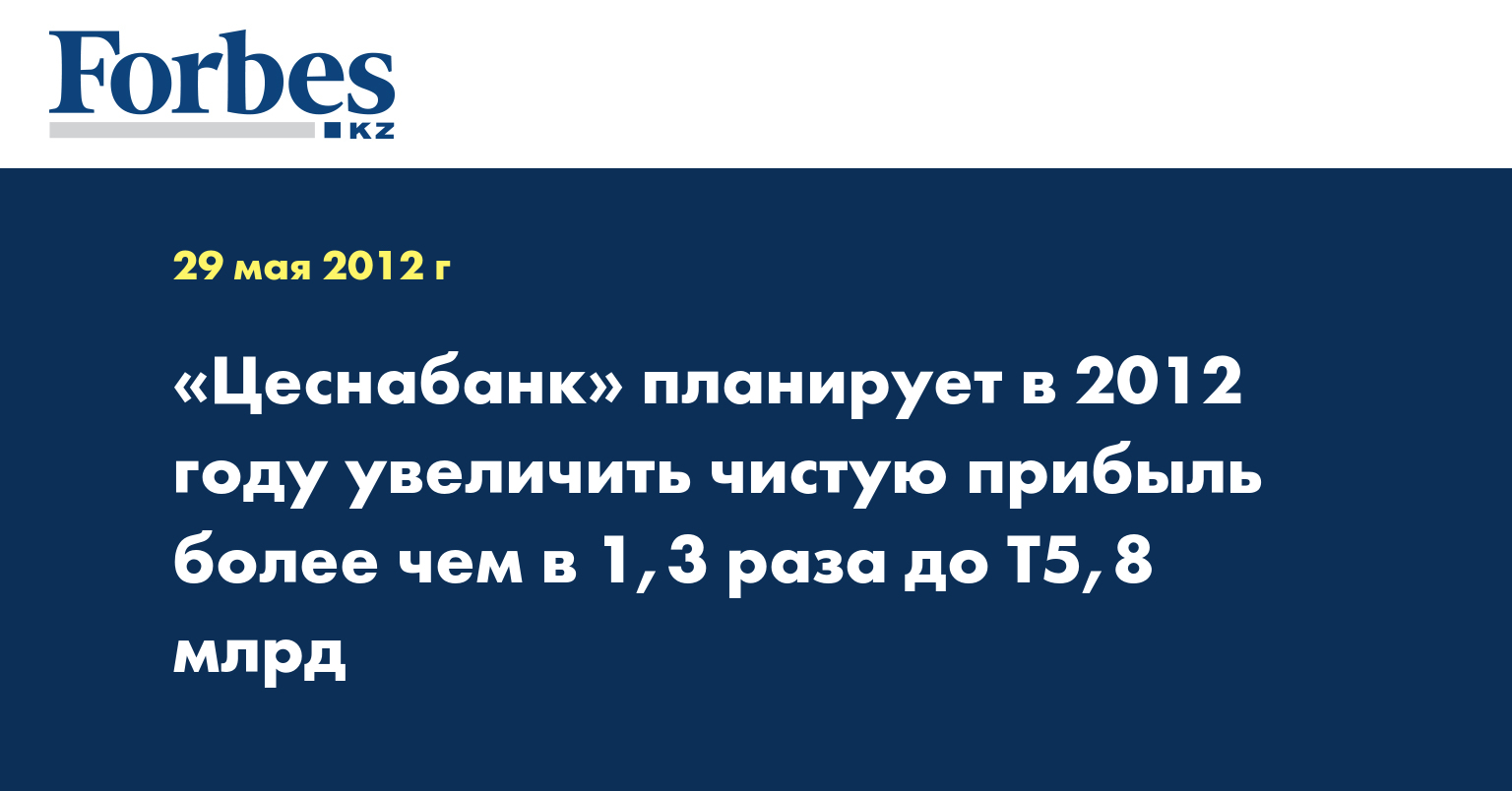 Напомним, что прибыль «Цеснабанка», согласно консолидированной финансовой отчетности по МСФО, в 2011 году выросла более чем в 6 раз до Т4,14 млрд против Т685,95 млн по итогам 2010 года.