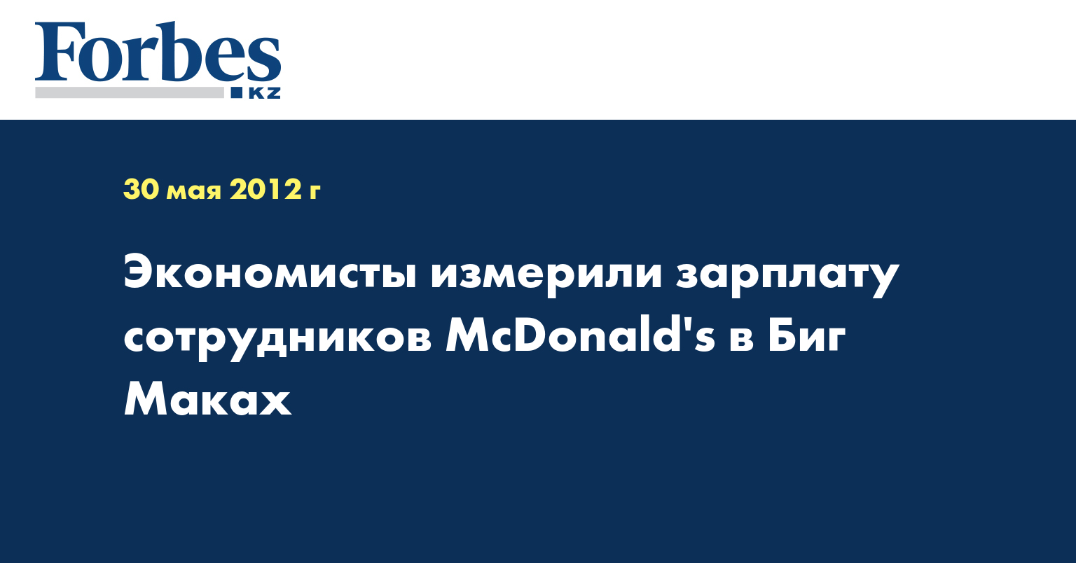 Зарплаты сотрудников McDonald's по всему миру сильно отличаются не только в денежном выражении, но и в количестве Биг Маков, которые можно купить на эту сумму. К такому выводу пришел экономист Орли Ашенфельтер из университета Принстона, проанализировавший зарплатные ведомости McDonald's во всем мире, сообщает Lenta.ru. С его работой можно ознакомиться здесь (файл pdf).