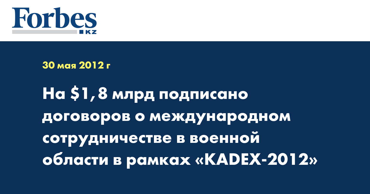 В рамках II международной выставки вооружения и военно-технического имущества «KADEX-2012» национальная компания «Казахстан инжиниринг» подписано договоров о международном сотрудничестве в военной области на $1,8 млрд, сообщило минобороны РК в среду, передает КазТАГ.