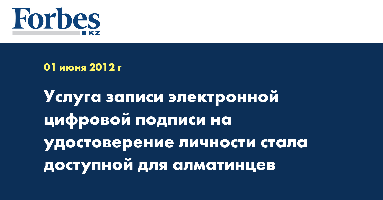 Как сообщается, в апреле текущего года услуга записи ЭЦП на электронные документы была запущена в Астане. На сегодняшний день цифровая подпись записана уже на 332 удостоверения личности. Планируется, что с 1 июля данная услуга будет доступна во всех центрах обслуживания населения Алматы и Астаны, а в последующем и в остальных ЦОНах страны.