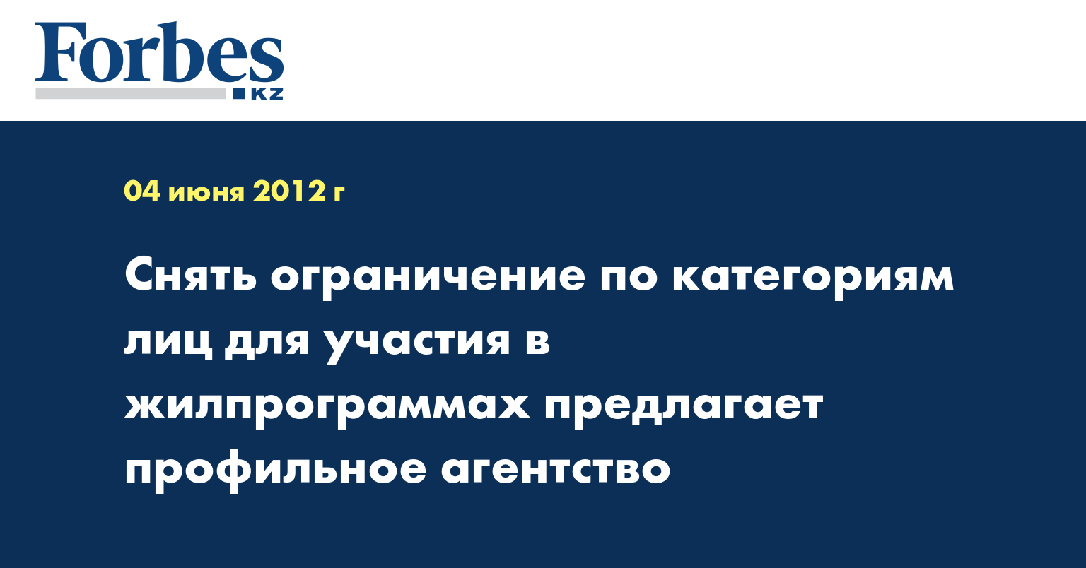 Агентство по делам строительства и ЖКХ предлагает снять ограничение по категориям лиц для участия в жилищных программах, сообщает КазТАГ.