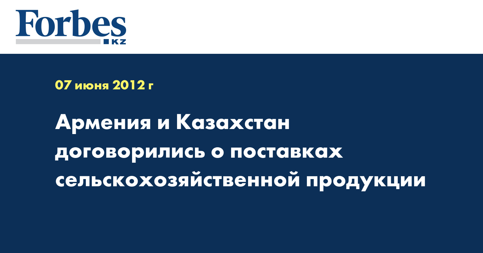 «Стороны договорились сотрудничать в области поставок сельскохозяйственной продукции на взаимовыгодных условиях и на постоянной основе осуществлять обмен опытом в отраслях агропромышленного комплекса», - говорится в сообщении, распространенном по итогам 4-го заседания казахстанско-армянской межправительственной комиссии по торгово-экономическому сотрудничеству.