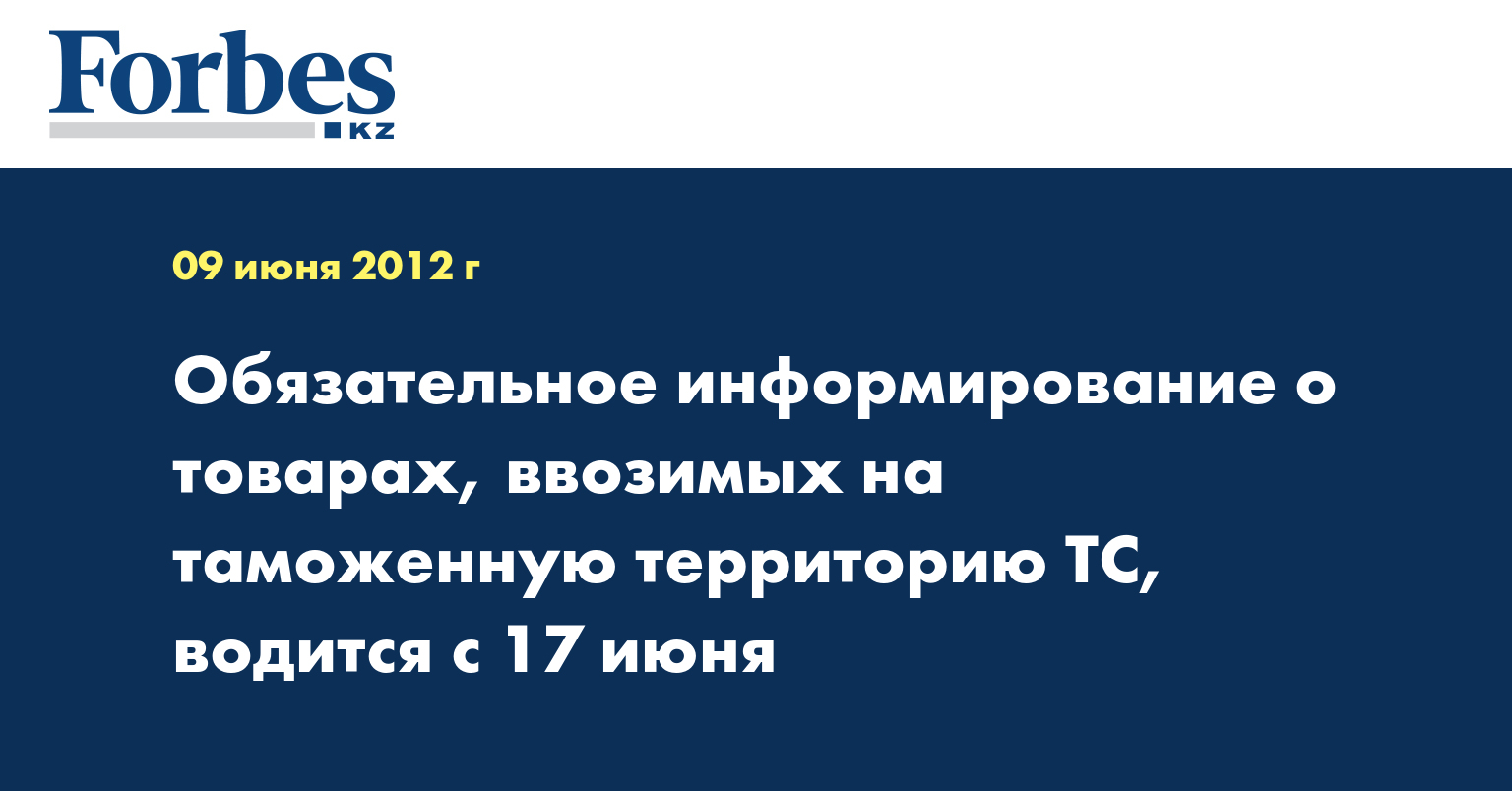 Обязательное предварительное информирование о товарах, ввозимых на таможенную территорию Таможенного союза (ТС), вводится с 17 июня, сообщил отдел по связям с общественностью и СМИ комитета таможенного контроля министерства финансов (КТК МФ) РК.