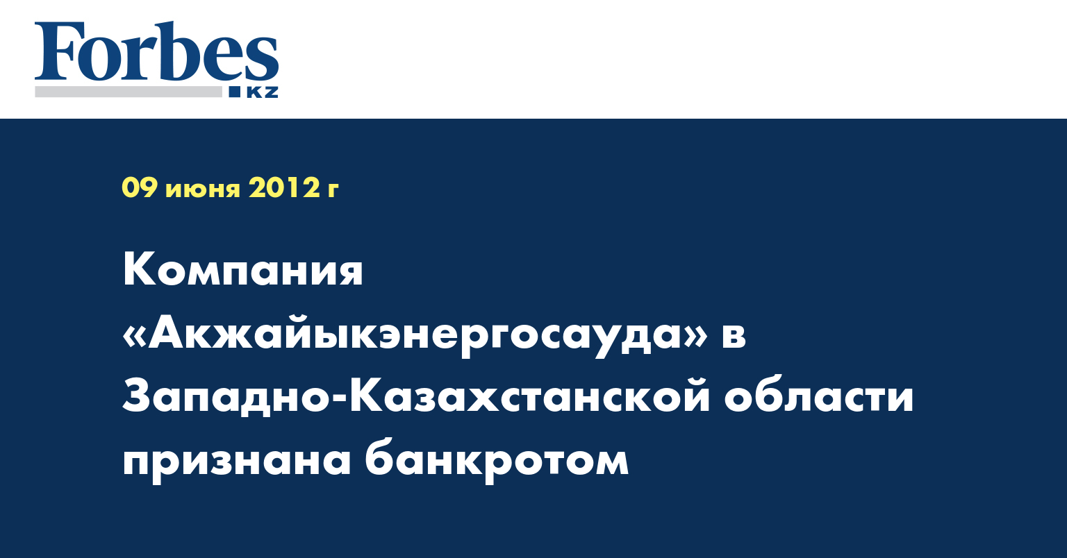 Решением специализированного межрайонного экономического суда Западно-Казахстанской области ТОО «Акжайыкэнергосауда» признано банкротом, сообщила пресс-секретарь областного суда Гульмира Кенжегалиева.