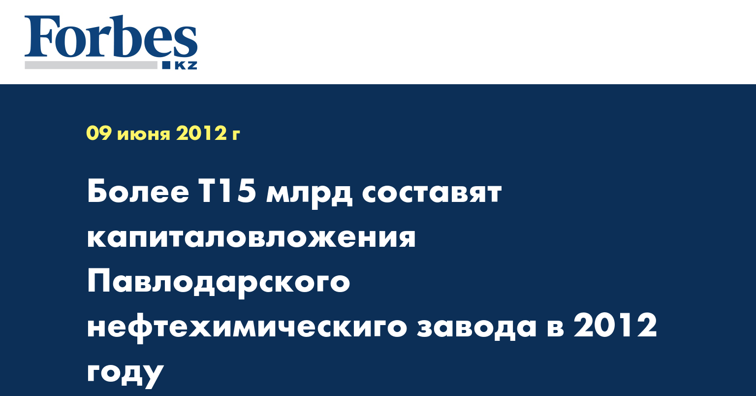 Капиталовложения АО «Павлодарский нефтехимический завод» (ПНХЗ) в 2012 году составят Т15 млрд 37 млн, сообщили в компании, передает КазТАГ.