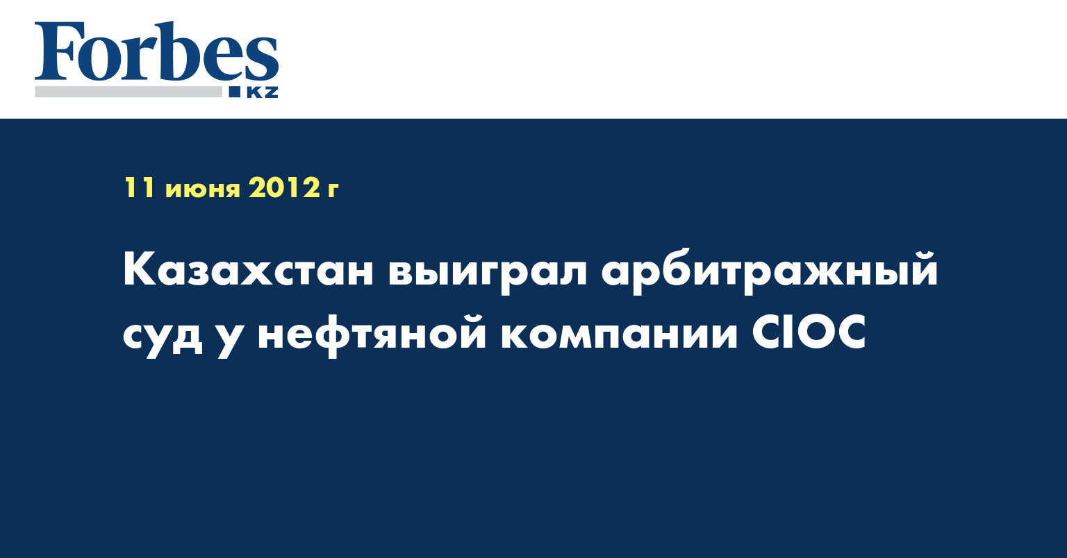 «5 июня 2012 года арбитражный суд международного центра по урегулированию инвестиционных споров (МЦУИС) принял решение по делу CIOC против Республики Казахстан. Сумма иска компании CIOC составляла свыше 1,2 млрд долларов США. МЦУС отклонил данные требования и постановил компании CIOC выплатить в пользу Казахстана 3,2 млн долларов США в качестве компенсации расходов по арбитражному разбирательству», - говорится в сообщении, размещенном на сайте ведомства.