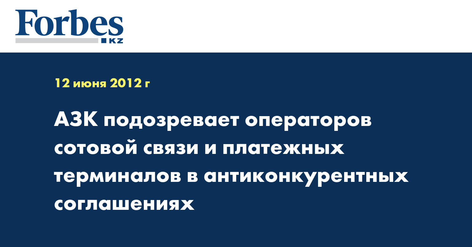 Агентство РК по защите конкуренции (АЗК) подозревает операторов сотовой связи и платежных терминалов в антиконкурентных соглашениях, указывается в сообщении ведомства, передает КазТАГ.