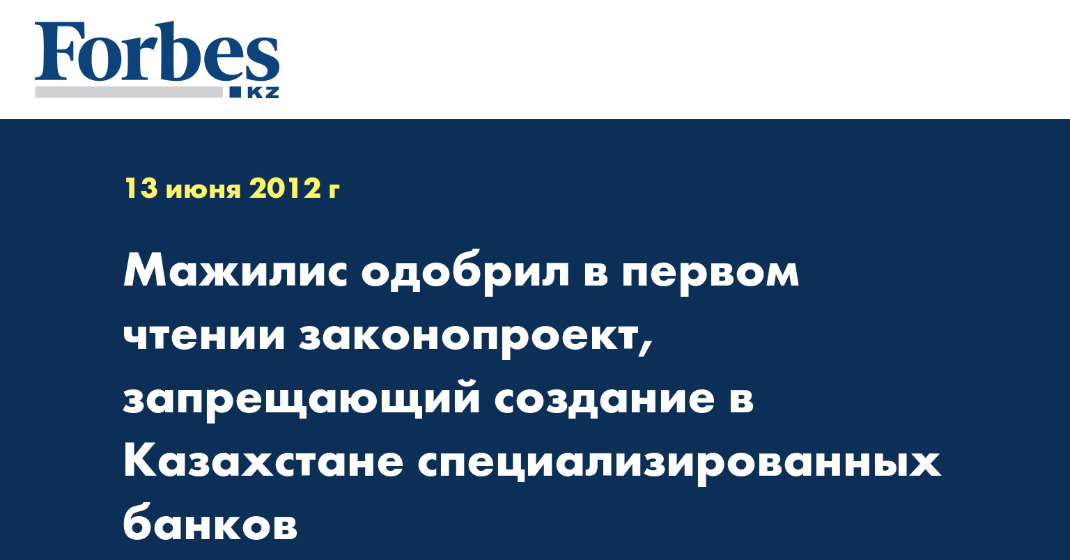 В частности, по его словам, планируется на законодательном уровне закрепить запрет на создание в Казахстане специализированных банков, не способных функционировать полноценно в конкурентной среде без поддержки со стороны государства.