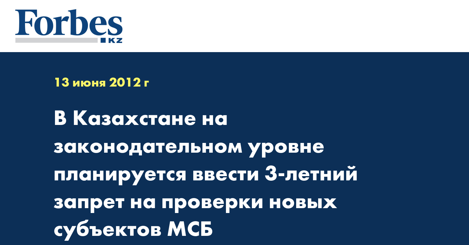 «Законопроектом предусмотрено… введение запрета на проверки вновь созданных субъектов малого и среднего предпринимательства в течение трех лет»,- говорится в заключении комитета по экономической реформе и региональному развитию, передает КазТАГ.