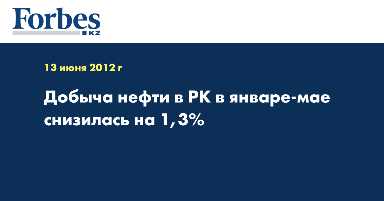 Добыча нефти в Казахстане в январе-мае составила 27,787 млн тонн, что на 1,3% ниже показателя за аналогичный период 2011 года, указывается в ежемесячном отчете агентства РК по статистике, передает КазТАГ.