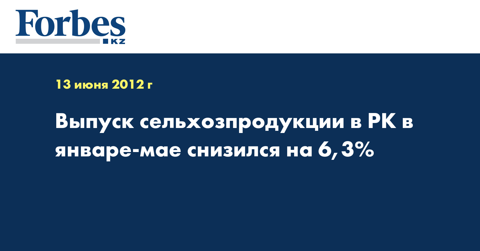 Объем валового выпуска продукции (услуг) сельского хозяйства в РК в январе-мае составил Т345,8 млрд, что на 6,3% меньше, чем в соответствующем периоде 2011 года, указывается в ежемесячном отчете агентства РК по статистике, передает КазТАГ.