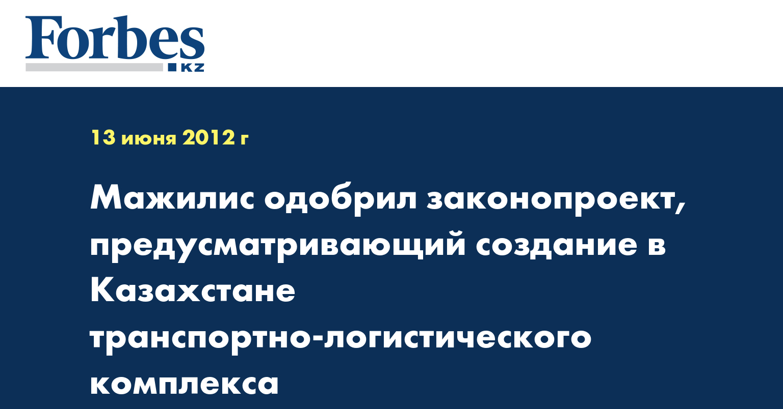 Мажилис парламента РК на пленарном заседании в среду одобрил проект закона РК «О внесении изменений и дополнения в законы РК «О транспорте в РК» и «О торговом мореплавании», предусматривающий создание в Казахстане транспортно-логистического комплекса