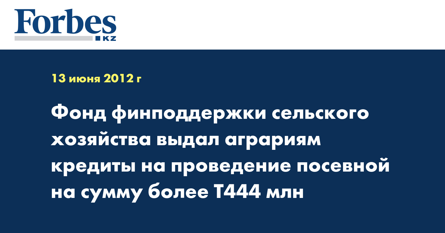 В рамках реализации программы «Егінжай» в текущем году на проведение весенне-полевых работ в РК АО «Фонд финансовой поддержки сельского хозяйства» выдал 179 кредитов на общую сумму Т444,3 млн, указывается в информации фонда, распространенной в среду, передает КазТАГ.