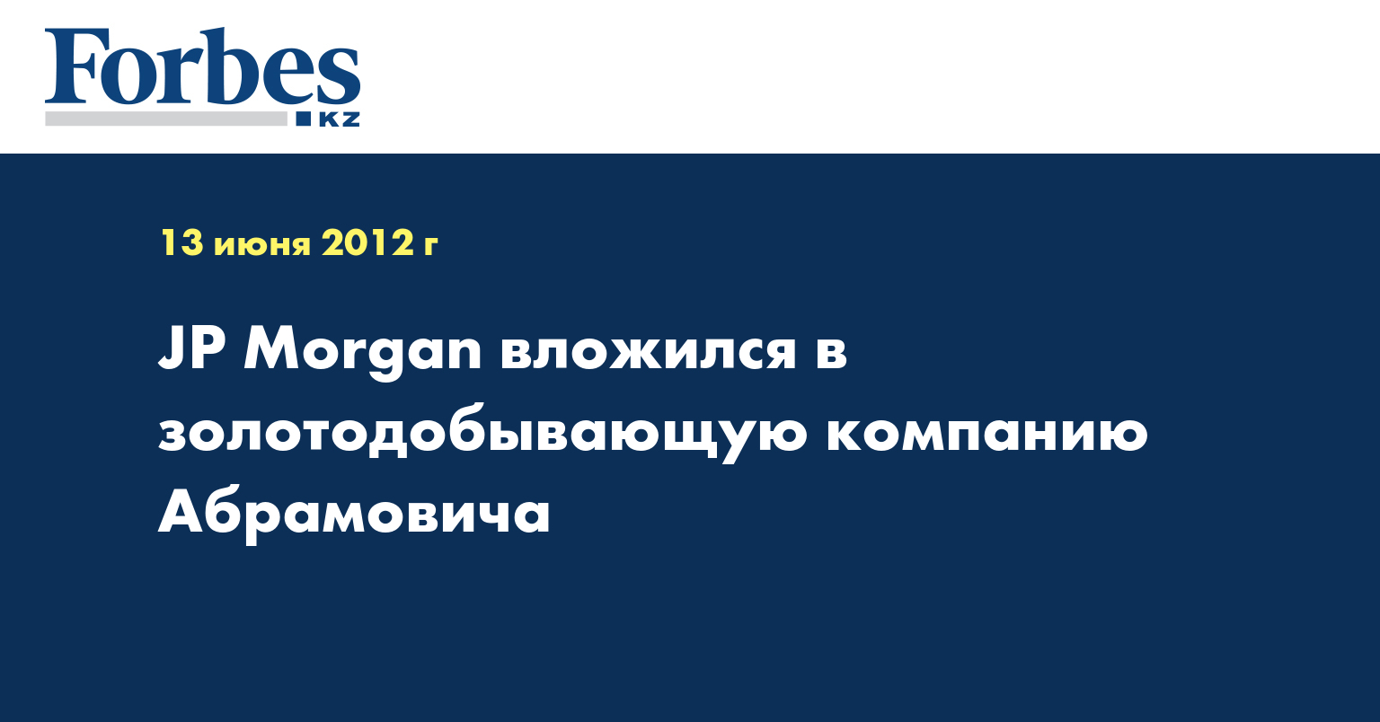 Американский банк JP Morgan через дочернюю управляющую компанию JP Morgan Asset Management приобрел 5 процентов акционерного капитала британской компании Highland Gold Mining, контрольный пакет в которой принадлежит Millhouse Group Романа Абрамовича и еще ряду российских бизнесменов. Об этом сообщается в пресс-релизе золотодобывающей структуры. У кого был приобретен пакет акций, компания не уточняет, передает Lenta.ru.