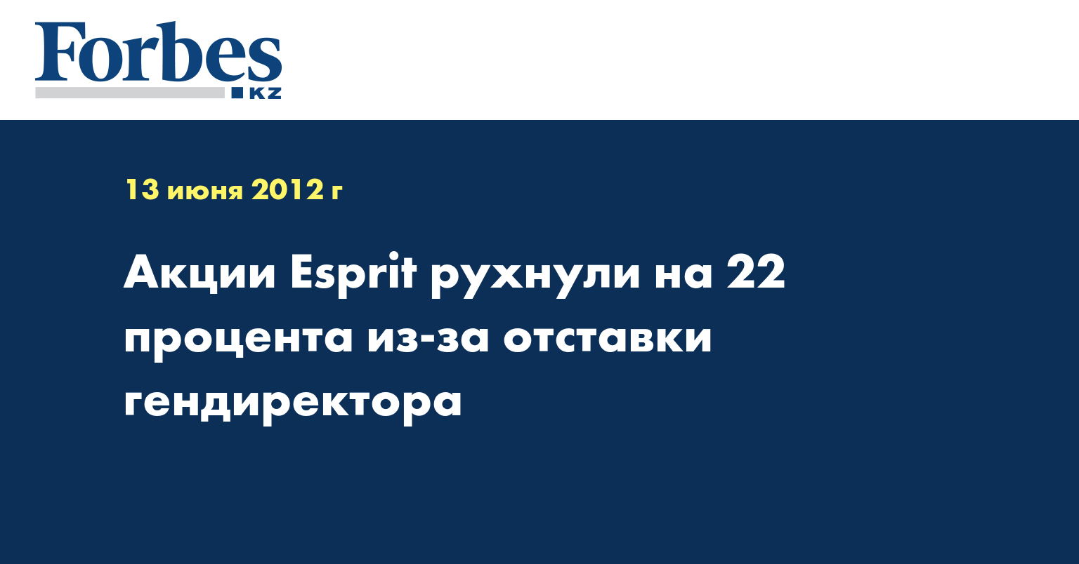 Акции компании - производителя модной одежды Esprit на торгах в Гонконге упали на 22 процента до 10,46 гонконгского доллара. Как сообщает BBC News, это произошло после того, как генеральный директор Esprit Рональд ван дер Вис (Ronald van der Vis) объявил о своей отставке. Позднее, как указывает Agence France-Presse, торги бумагами Esprit были приостановлены, передает Lenta.ru.