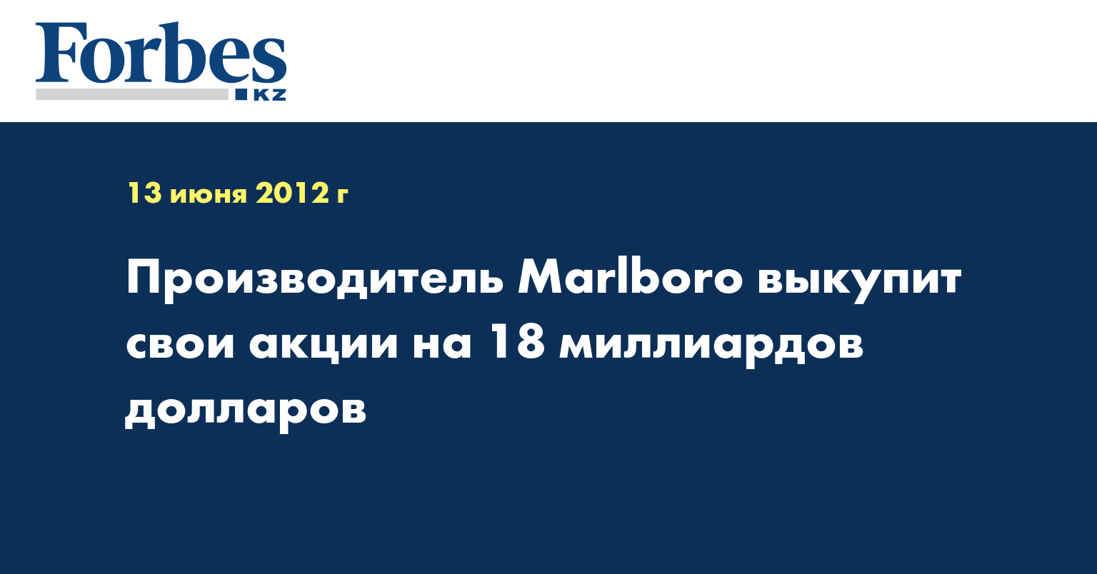 Компания Philip Morris, производитель сигарет Marlboro, Chesterfield и Parliament, в ближайшие три года выкупит с рынка свои акции на 18 миллиардов долларов. Как говорится в официальном пресс-релизе табачной компании, выкуп начнется с августа, передает Lenta.ru.