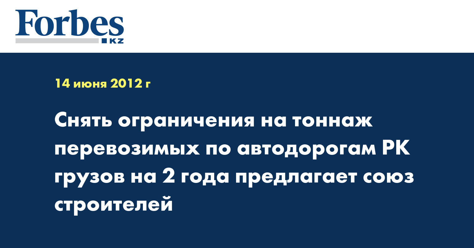 Республиканское объединение юридических лиц (РОЮЛ) «Союз строителей Казахстана» предлагает приостановить действие постановления правительства, согласно которому предусмотрен запрет на перевозку по автодорогам грузов более 8-10 тонн, сообщил председатель РОЮЛ «Союз строителей Казахстана» Талгат Ергалиев.