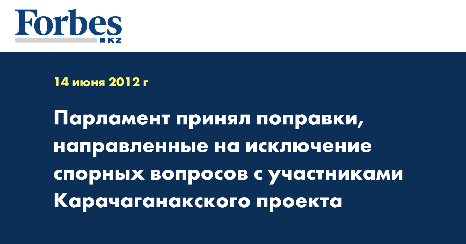 Как сообщалось, законопроект урегулирует спорные вопросы по Карачаганакскому проекту.