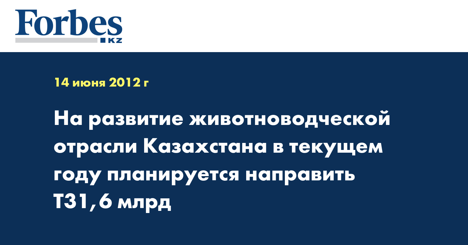 «В текущем году на животноводческую отрасль планируется направить Т31,6 млрд», - говорится в пресс-релизе, распространенном на коллегии МСХ в четверг, передает КазТАГ.