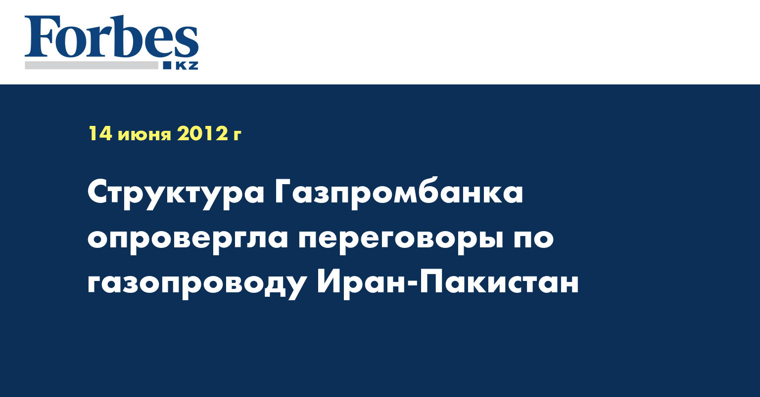 Подразделение Газпромбанка GPB Global Resources не ведет переговоров о финансировании строительства газопровода между Ираном и Пакистаном. Об этом "Ленте.ру" сообщил директор по корпоративным связям GPB Global Resources Сергей Тагашов. По его словам, компания не намерена участвовать в финансировании этого проекта.