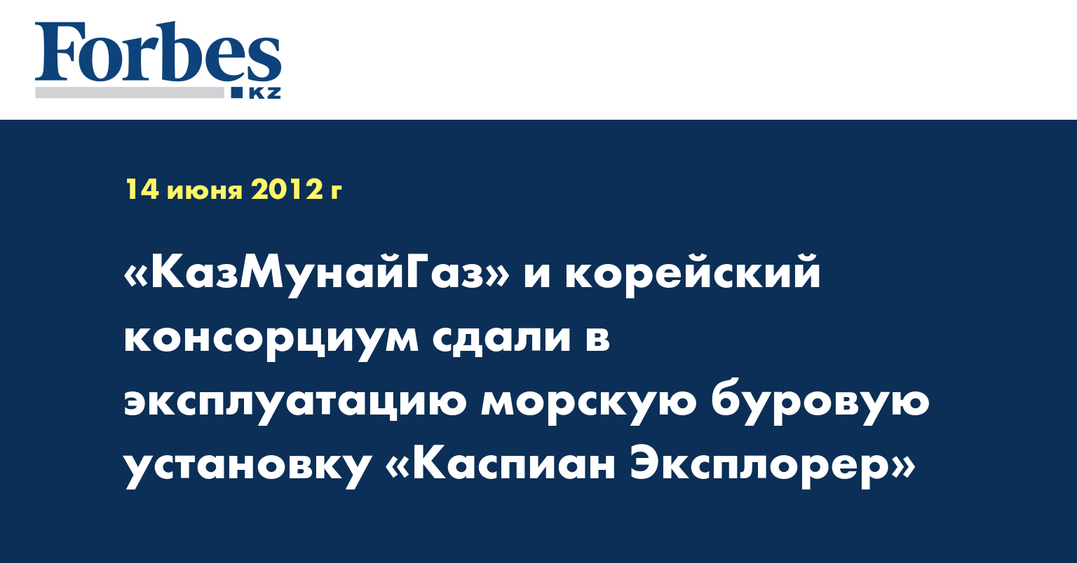 АО «НК «КазМунайГаз» (КМГ) и корейский консорциум Каспийского нефтяного проекта сдали в эксплуатацию морскую буровую установку «Каспиан Эксплорер», указывается в сообщении КМГ.