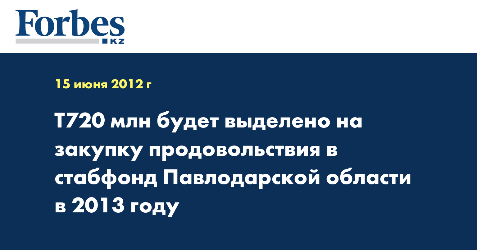 Т720 млн бюджетных средств будет выделено на закупку продовольствия в стабилизационный фонд Павлодарской области в 2013 году, сообщили в пресс-службе областного акимата.