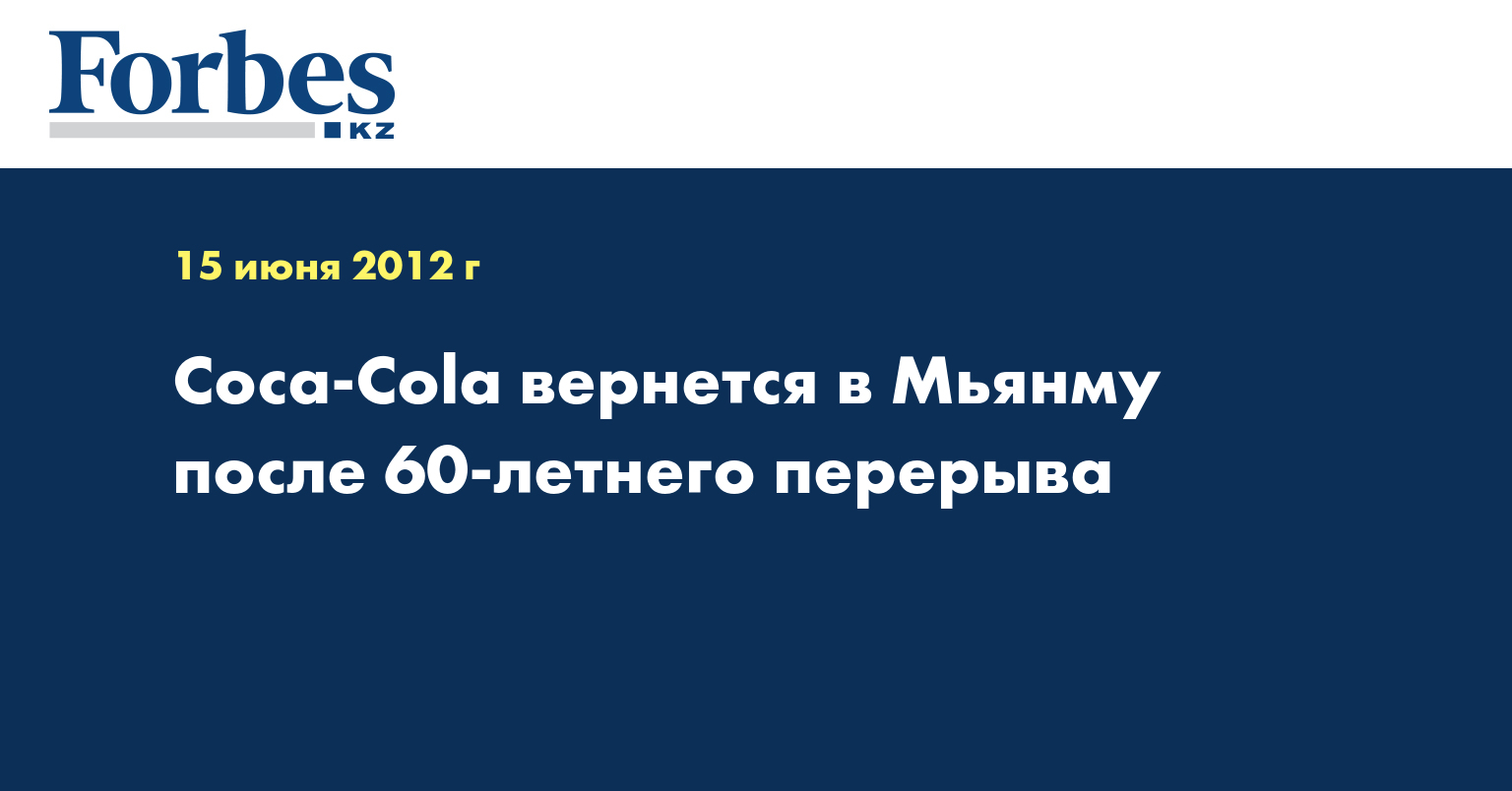 Это связано с решением США снять часть санкций с Мьянмы в ответ на политические реформы в этой стране. В The Coca-Cola Company заявили, что начнут развивать бизнес в Мьянме, как только правительство США разрешит своим компаниям инвестировать в экономику этой страны.