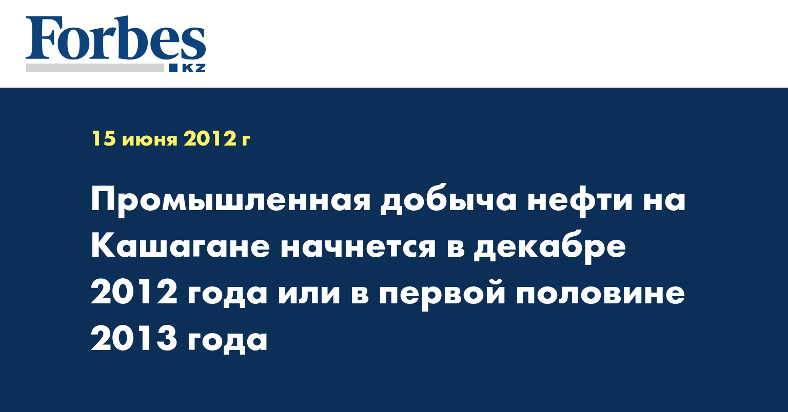 «Как я уже сказал, согласно поправке №4, подписанной в мае, возможно, будет декабрь 2012 или июнь-2013 года», - сказал он, говоря о предполагаемых сроках добычи нефти на Кашагане на конференции «Развитие Каспийского шельфа» в пятницу, передает КазТАГ.