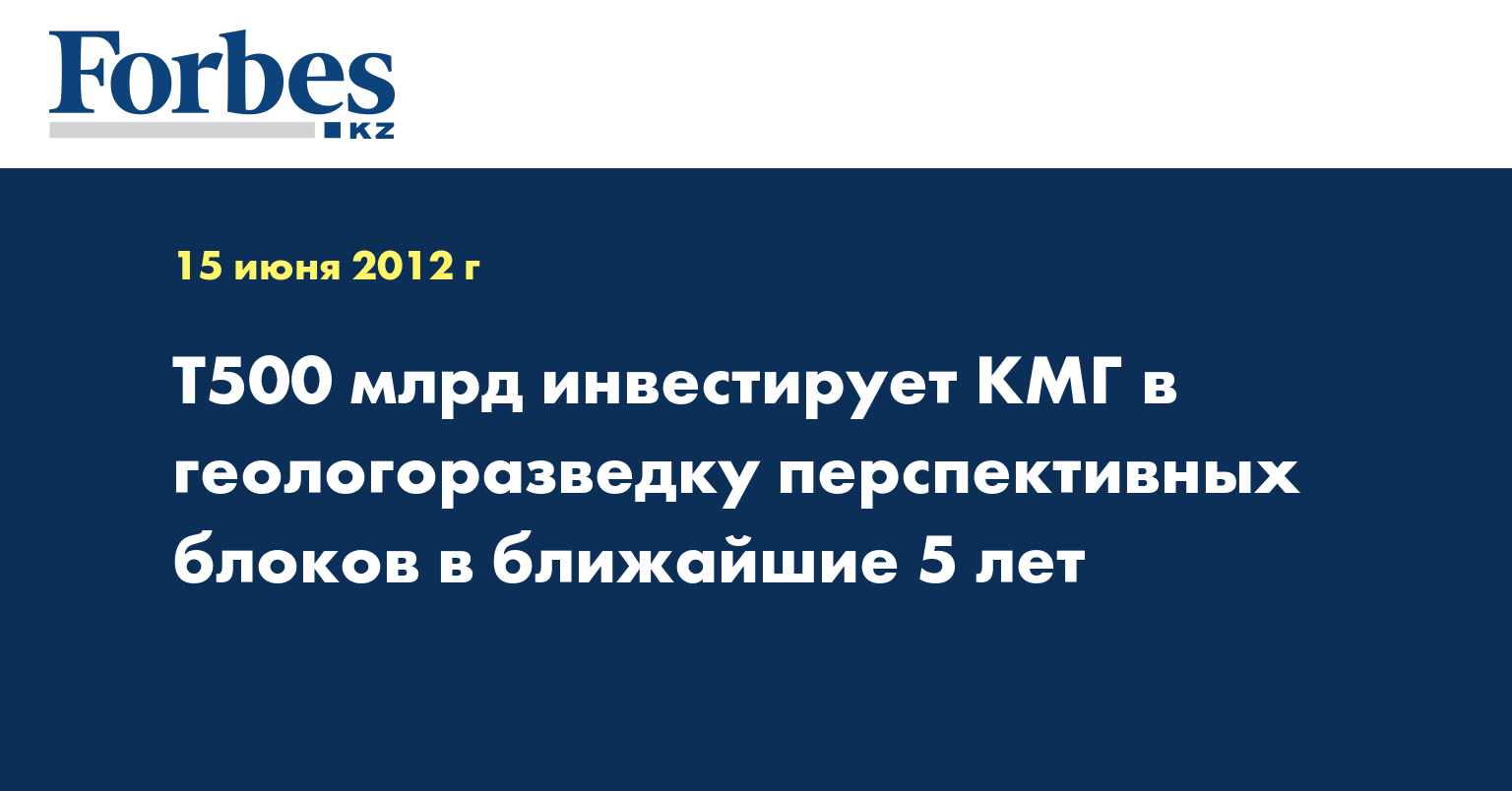 «Национальная компания «КазМунайГаз» имеет четкое представление по достижению поставленных задач, отраженных в долгосрочной стратегии.(...) Планируем провести широкий спектр геологоразведочных работ на целом ряде перспективных блоков. (Компания – КазТАГ) предусмотрела значительное увеличение объемов финансирования геологоразведочных работ - порядка Т500 млрд на ближайшие 5 лет. Эта цифра Т500 млрд по группе компаний «КазМунайГаз» с участием дочерних компаний и совместных предприятий», - сказал он в ходе II нефтегазовой конференции «Развитие Каспийского шельфа» в пятницу.