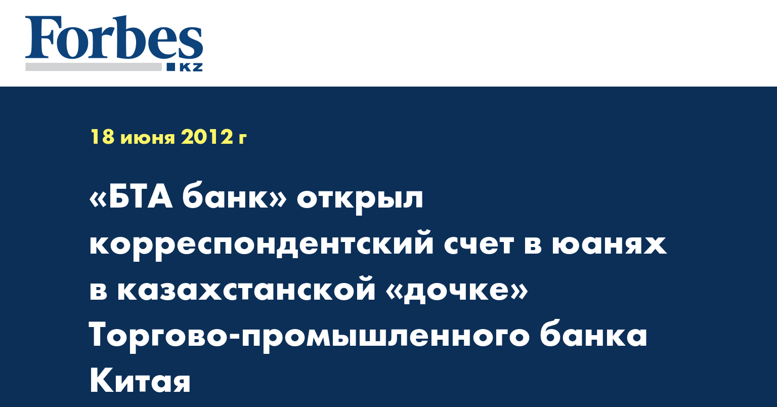 АО «БТА банк» открыл корреспондентский счет в юанях в казахстанской «дочке» Торгово-промышленного банка Китая (ICBC) - ICBC Almaty, сообщает пресс-служба банка.