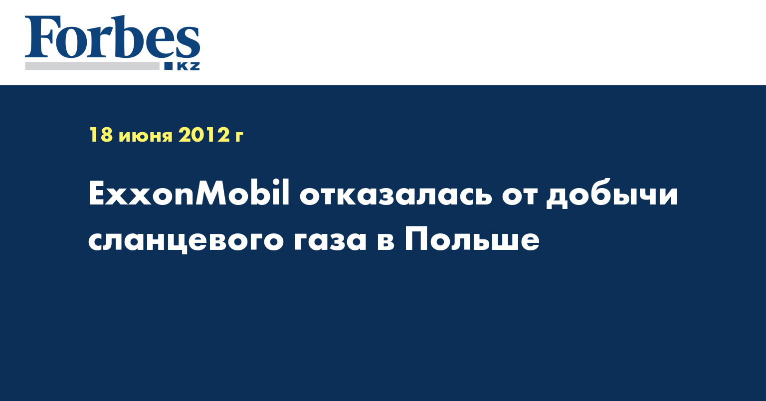Американская нефтегазовая корпорация ExxonMobil прекратила поиски сланцевого газа в Польше после того, как две разведочные скважины не обнаружили достаточного объема запасов. Об этом сообщает агентство Bloomberg, ссылающееся на советника компании Адама Копыша (Adam Kopysc), передает Lenta.ru.