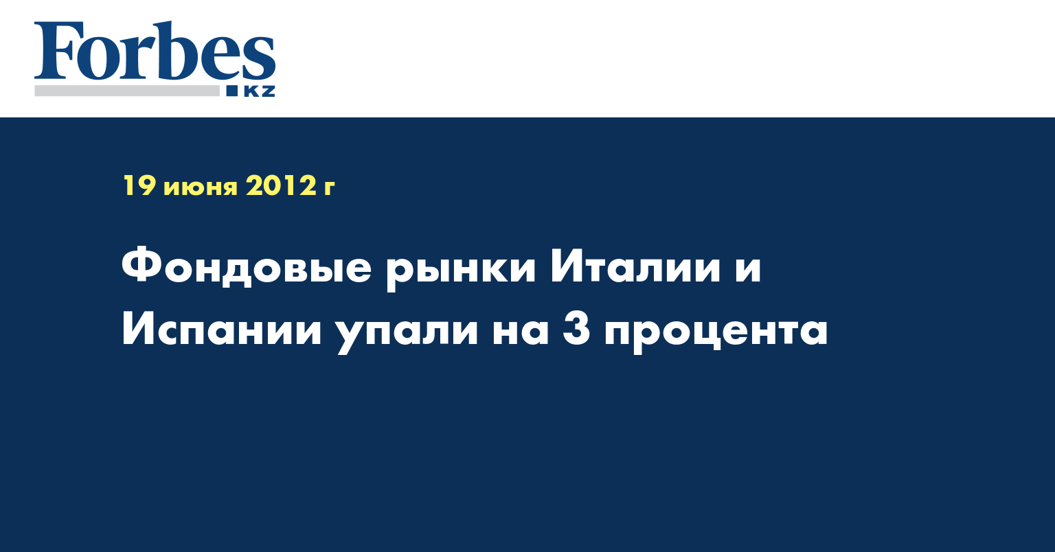 Индикаторы испанской и итальянской фондовых бирж 18 июня упали на 3,1 процента каждый. На других европейских площадках движение индексов было разнонаправленным: по состоянию на 19:30 по Москве французский САС 40 потерял почти процент, немецкий DAX вырос на 0,1 процента, британский FTSE 100 прибавил 0,02 процента, сообщает Lenta.ru.