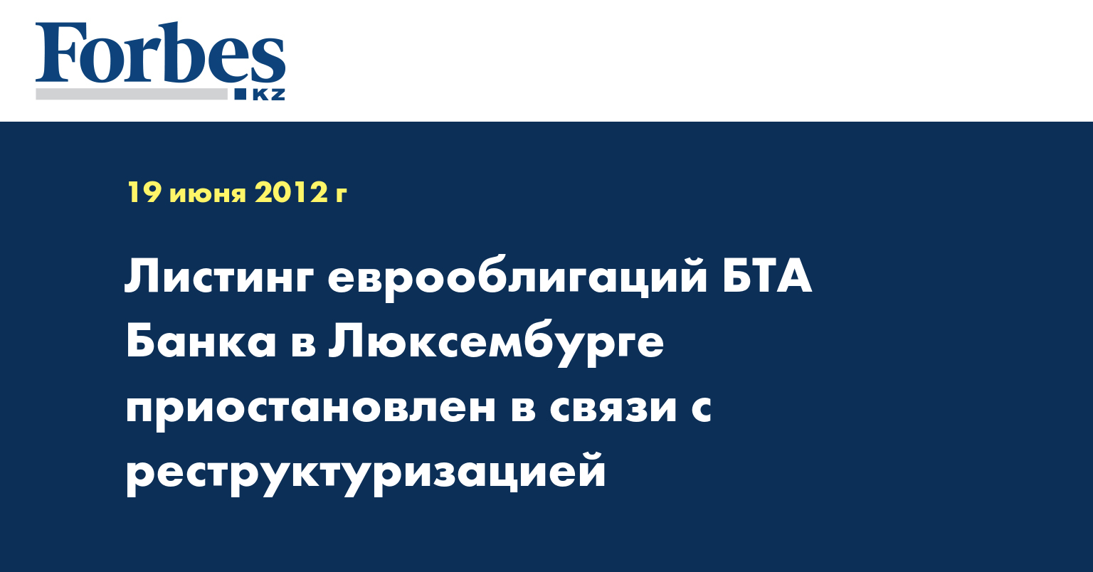 Листинг международных облигаций казахстанского БТА Банка на Люксембургской фондовой бирже (EuroMTF Market) приостановлен в связи с текущим процессом реструктуризации части финансовой задолженности банка, сообщила кредитная организация.