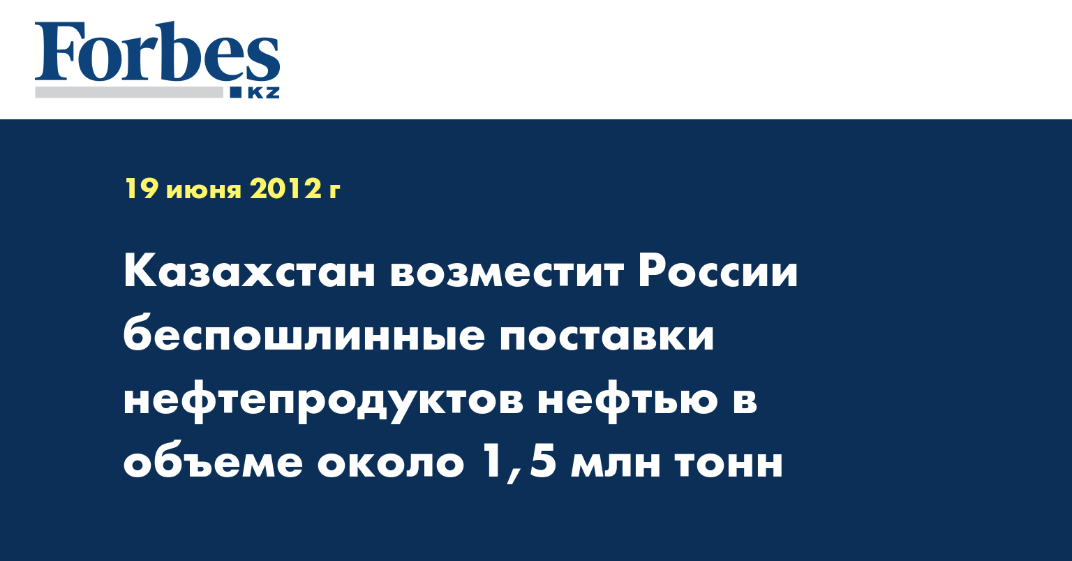 Как сообщалось ранее со ссылкой на РБК и на статс-секретаря, замминистра финансов РФ Сергея Шаталова, Россия и Казахстан достигли принципиального соглашения по компенсации выпадающих доходов бюджета РФ от беспошлинных поставок топлива в Казахстан за счет организации встречных поставок казахской нефти в Россию в объеме около 2 млн тонн. Казахстан занимается добычей и экспортом нефти, при этом импортирует у России нефть и нефтепродукты беспошлинно в рамках Таможенного союза.