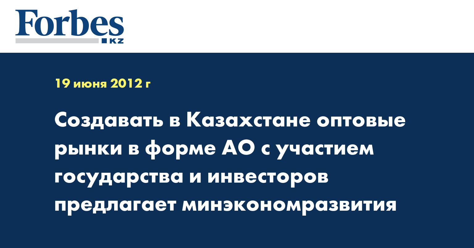 Cоздавать в Казахстане оптовые рынки в форме акционерных обществ (АО) с участием государства и инвесторов предлагает министерство экономического развития и торговли, передает корреспондент агентства КазТАГ.